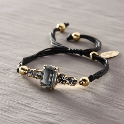 ESTILO FRANCÉS. Pulsera negra con cristal de miel