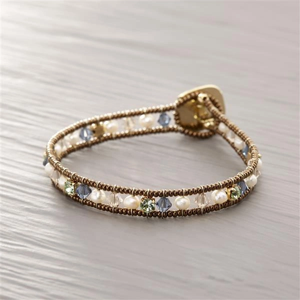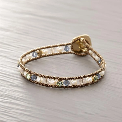 VESTIDITO NEGRO. Pulsera de cuero con cristales y perlas