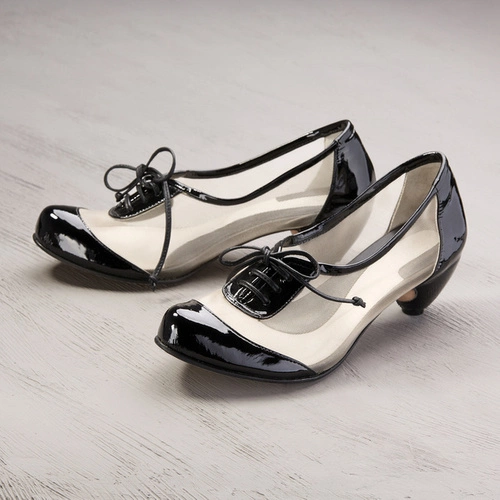 Czarno na białym. Pantofelki na niskim obcasie r. 36