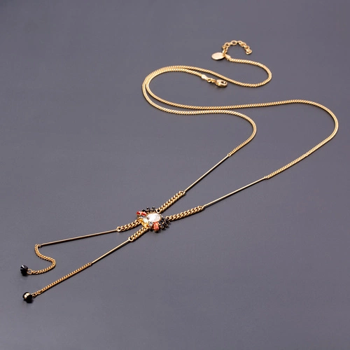 - Naszyjnik z pozłacanego mosiądzu. Ozdobiony kryształkami Swarovskiego