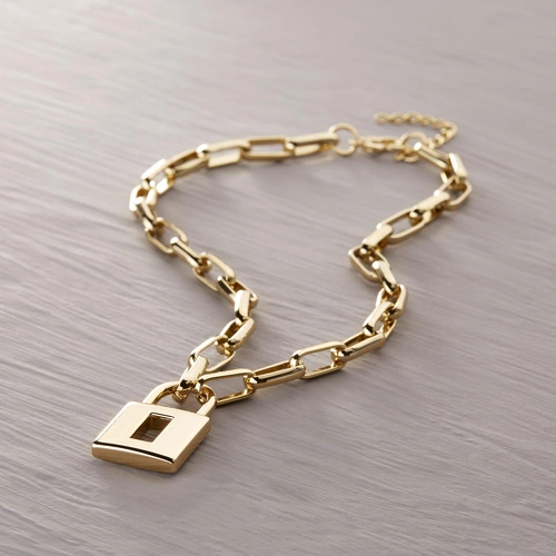 - Wisior z misternie wykonaną kłódką. Biżuteria ze stali nierdzewnej i pozłocona. Idealna do białej koszuli i jeansów. Hit na ten sezon!