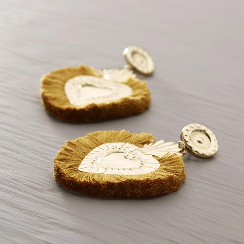 - Pendientes hermosos hechos de latón. Decorados en forma de corazón. Cierre hecho de plata sobredorada. Pendientes ligeros y muy cómodos de llevar. Diseñados en Taormina, Sicilia. No sientes cuando los llevas. ¡Los recomiendo para ropa blanca!