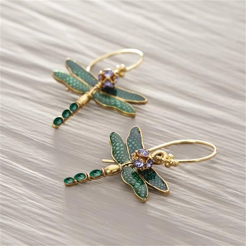 LIBÉLULA DE ESMERALDA. Pendientes colgantes con libélula
