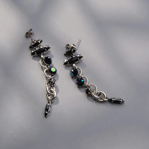 Kolczyki z czarnymi płatkami i kryształkami w tonie cabernet