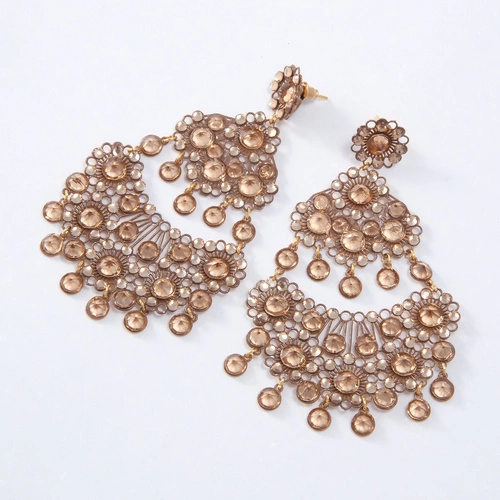Złocone kolczyki żyrandole z szampańskimi kryształami