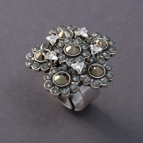 Srebrzony pierścionek z formie kwiatów a la stacja kosmiczna