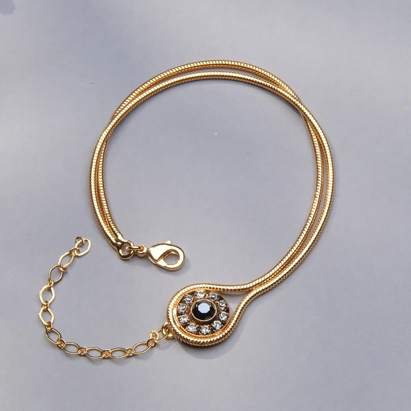 Złocona bransoletka na żmijce z oczkiem z czarnymi kryształami