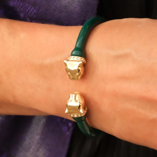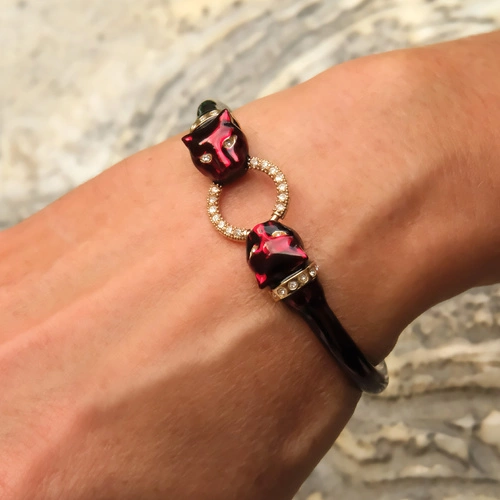 Sztywna otwarta bransoletka z dwiema głowami panter