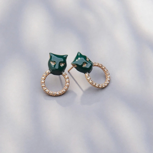 Kolczyki z głową czarnej pantery z ringiem z cyrkoniami
