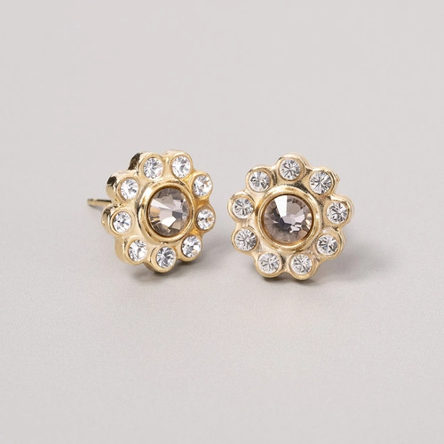 Złocone kolczyki kwiaty z perłami i szarym kryształem