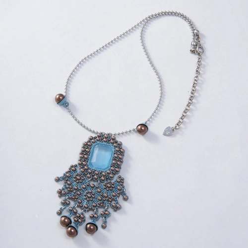 Złocony naszyjnik z błękitnym przesuwnym dekorem z żywicy