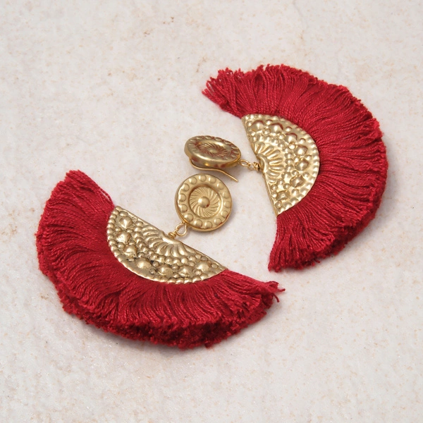 Ornamentalne pozłacane kolczyki wachlarze w czerwieni