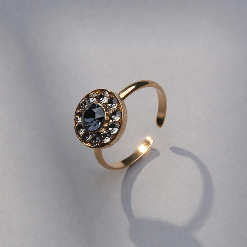 Mały pierścionek z kryształami w kolorze montana i szarym
