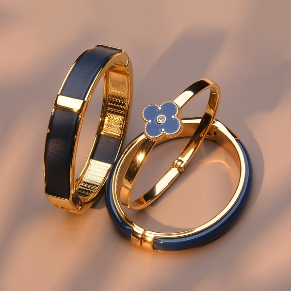 Zestaw trzech sztywnych bransoletek w złocie i granacie
