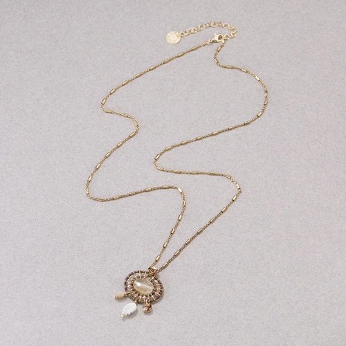 Wisiorek z cytrynem i koralikami z masy perłowej