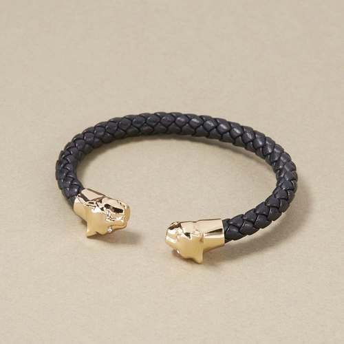 Sztywna skórzana bransoletka ze złotymi głowami panter