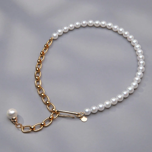 Krótki pozłacany naszyjnik z białych pereł i łańcucha
