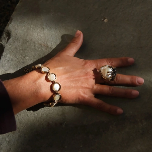 Złocona bransoletka z kólek z ruchomą masą perłową