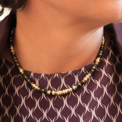 Złocony i srebrzony naszyjnik z czarnymi obsydianami