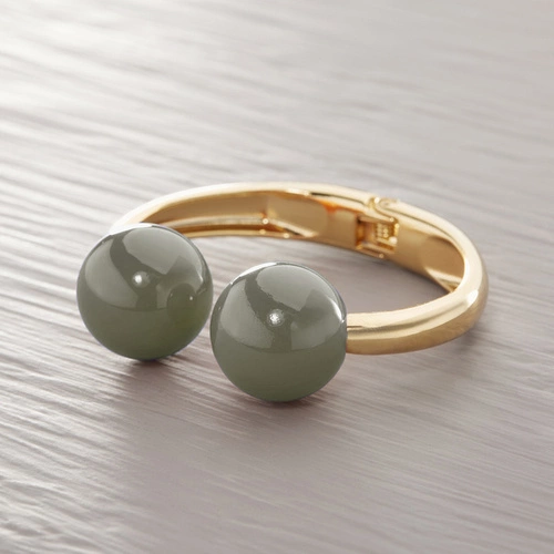 Sztywna złocona bransoletka z kulamii w kolorze khaki