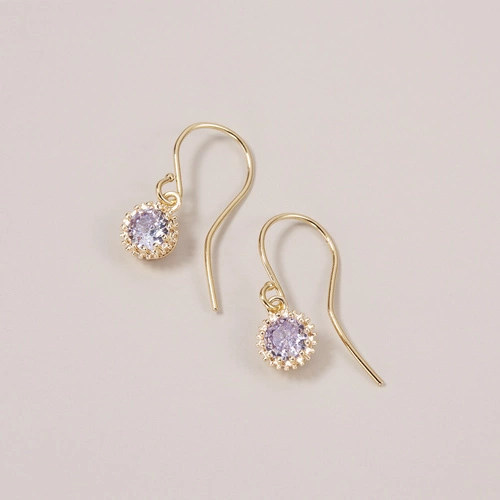 Drobne kolczyki wiszące z lilowymi kryształkami