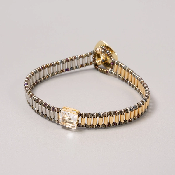 Bransoletka z koralików w złocie i srebrze z kryształem