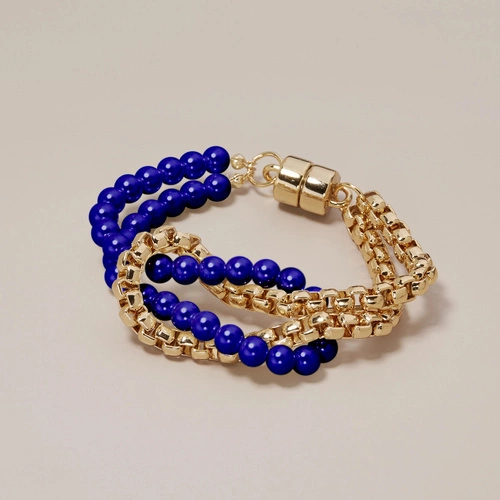 Bransoletka z koralików bordo i pozłacanego łańcuszka