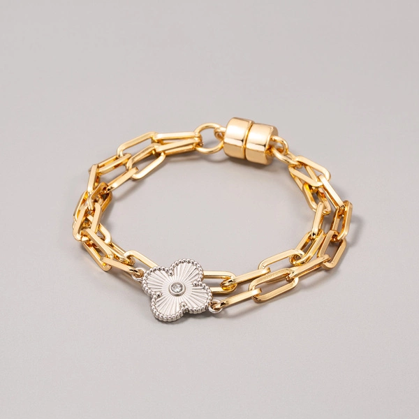 Złocona bransoletka na łańcuchu ze srebrzonym kwiatem