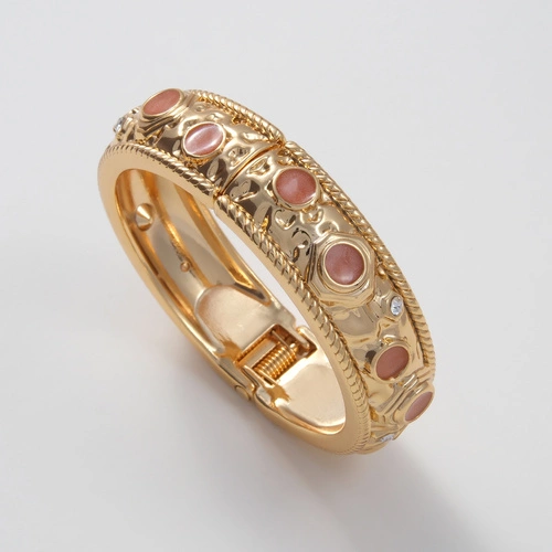 Pozłacana bransoletka z perłową emalią i cyrkoniami