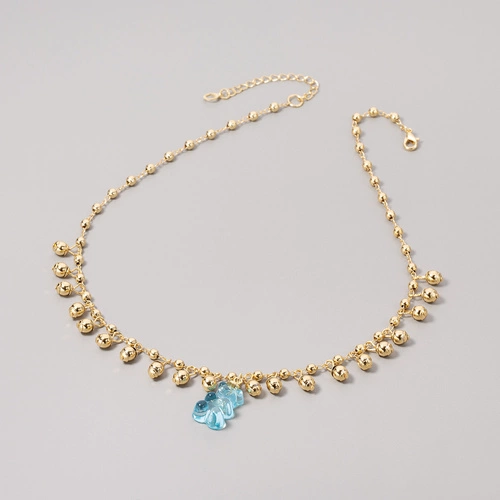 Złocony naszyjnik na łańcuszku z błękitnym misiem