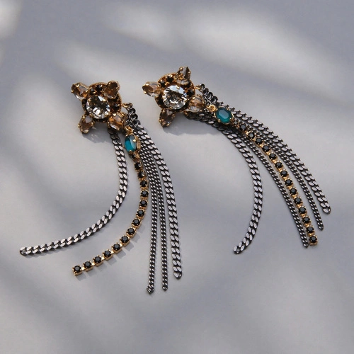 Zwiewne kolczyki z kryształami w czerni, błękicie i szampanie
