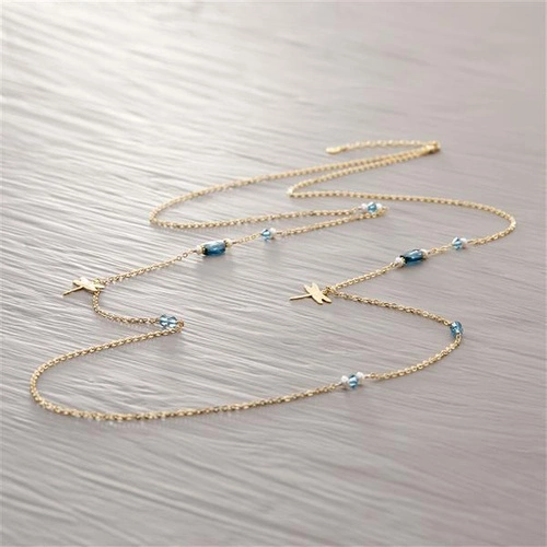 Długi naszyjnik z ważkami, kamieniami i kryształkami