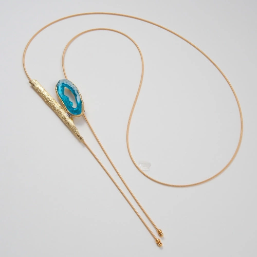 Złocony naszyjnik z błękitnym przesuwnym dekorem z żywicy