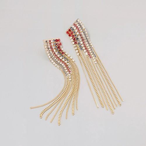 Długie kolczyki wiszące z kryształkami i łańcuszkami