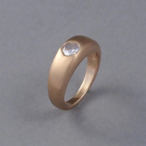 Gładki pozłacany pierścionek z przezroczystą cyrkonią