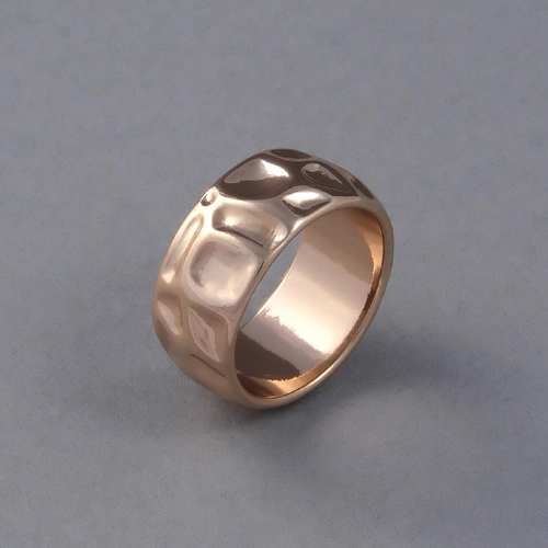 Szeroki pozłacany pierścionek o tłoczonej powierzchni