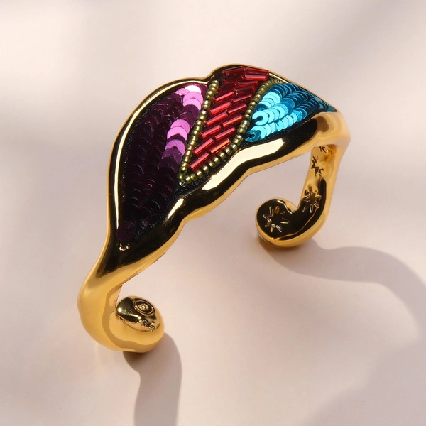 Pozłącana bransoletka muszla z cekinami i koralikami