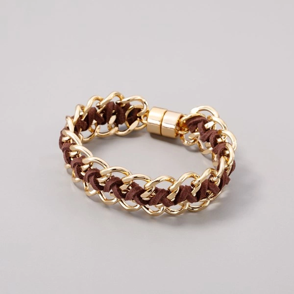 Pozłacana bransoletka z cienkim brązowym rzemykiem