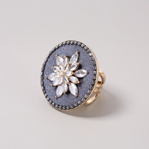 Pozłacany pierścień z motywem kwiatka z cyrkonii
