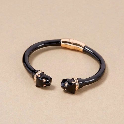 Sztywna otwarta bransoletka z dwiema głowami panter