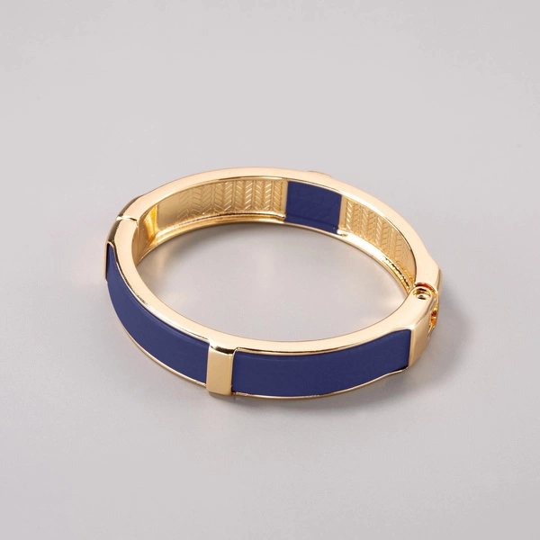 Sztywna złocona bransoletka z czarną połyskującą gumą