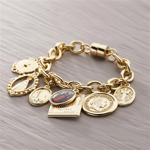 Złota bransoletka łańcuch z siedmioma zawieszkami