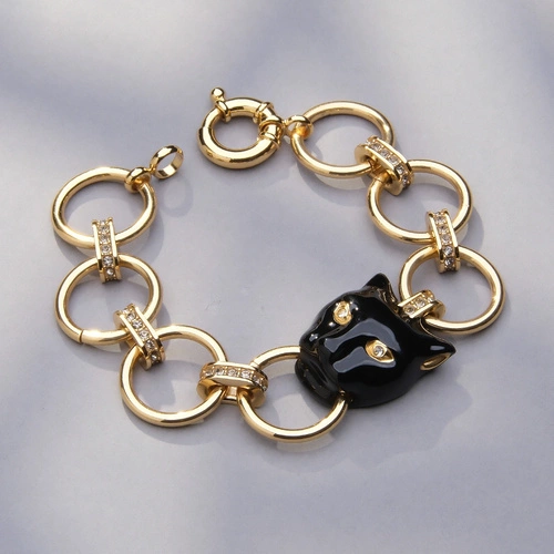 Złocona bransoletka z głową czarnej pantery z cyrkoniami