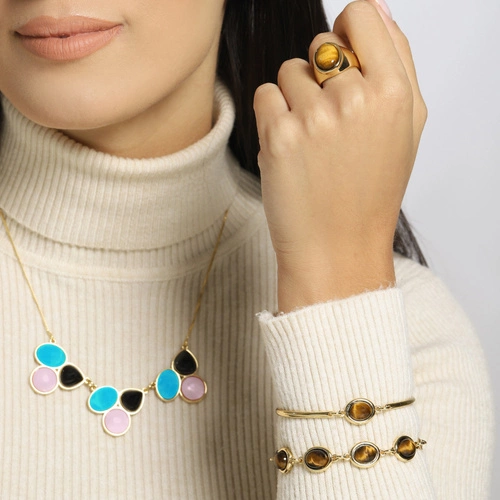 Złocony naszyjnik z kwarcami, agatami i obsydianami