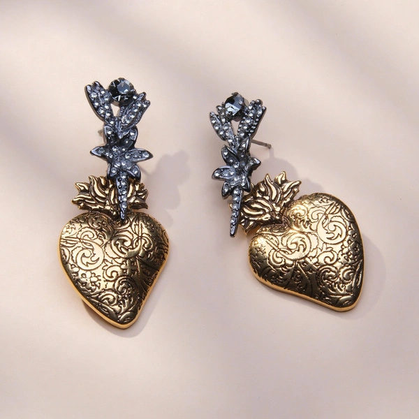 Złocone kolczyki z sercami z grawerowanymi motywami