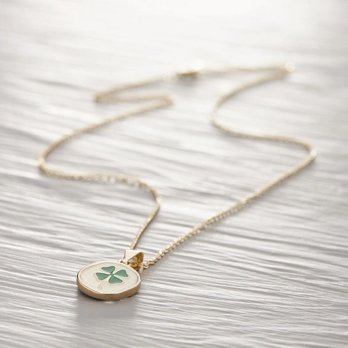 Krótki wisiorek na łańcuszku z zawieszką koniczynką