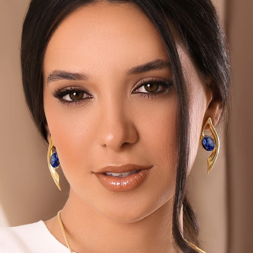 Złocone kolczyki a la nutki z niebieskim sodalitem