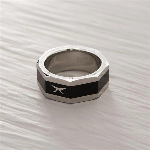 Czarno -srebrny sygnet ze stali, ze ściętymi bokami