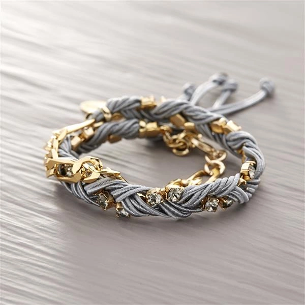 Złocona bransoletka z łańcucha przeplecionego sznurkiem