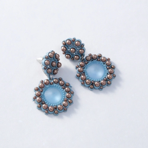 Posrebrzane kolczyki z ornamentem i szklaną perłą Majorka